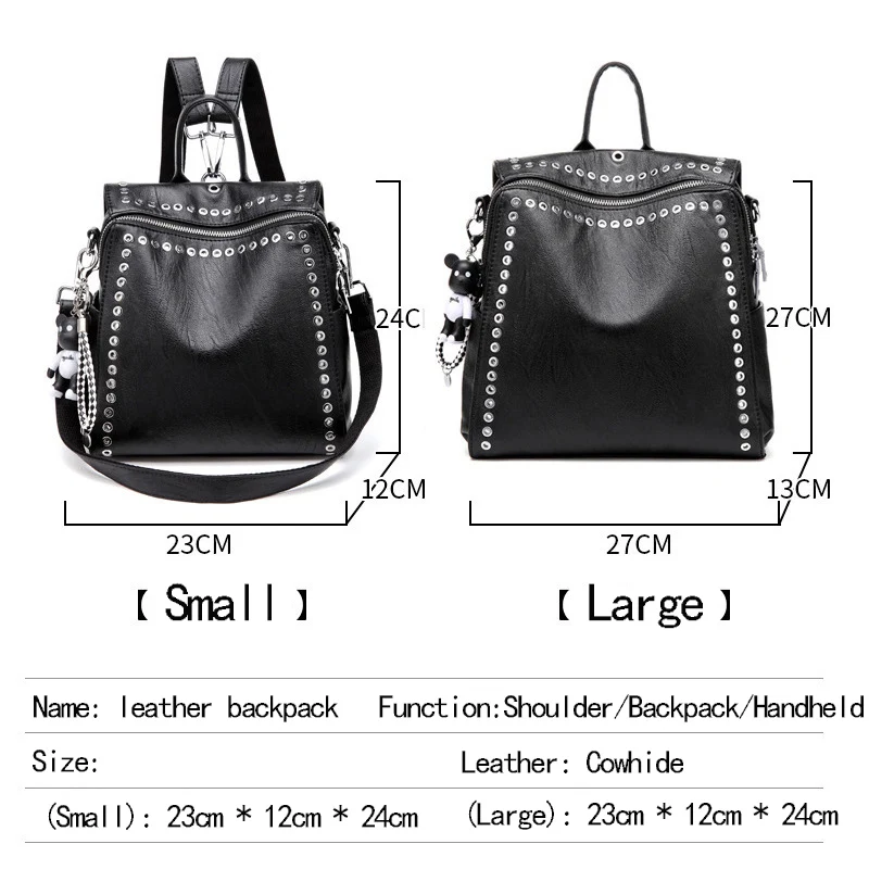 With its clean lines and retro-inspired silhouette enhanced by distinctive rivet detailing, this leather backpack effortlessly bridges the gap between casual and professional environments. The classic black leather complements virtually any outfit, from business attire to weekend wear, making this a truly versatile accessory. Sophisticated enough for the office yet practical for everyday adventures, this backpack makes a subtle style statement while remaining appropriate for diverse settings. The hollow-out decorative elements add a contemporary touch to the classic leather design, creating a unique accessory that stands out from typical backpacks.