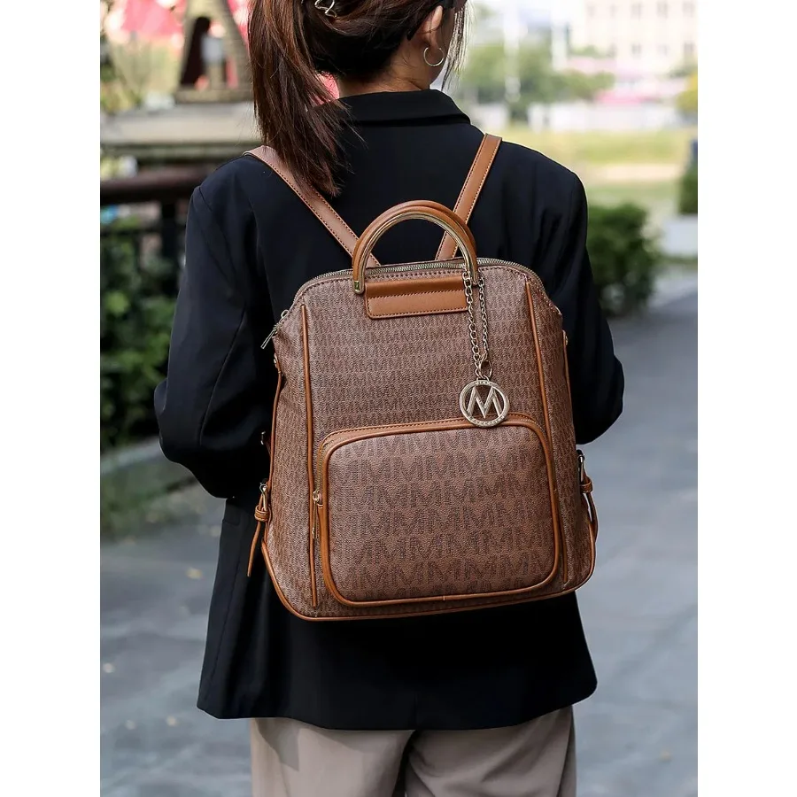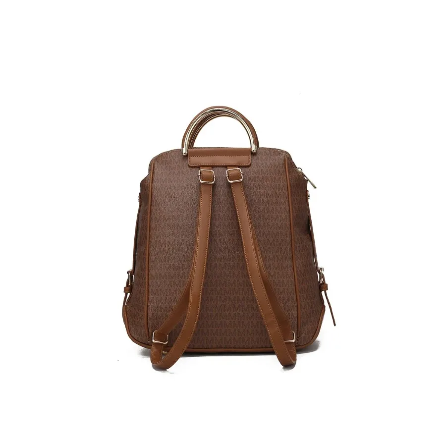 Elevate your accessory collection with this stylish MKF signature backpack, thoughtfully designed to combine fashion-forward aesthetics with everyday practicality. Crafted from high-quality vegan leather with a distinctive monogram print, this backpack offers an upscale look without compromising on ethical values. Featuring multiple compartments, easy-access pockets, and comfortable straps, this versatile bag transitions seamlessly from work to weekend adventures. Make a sophisticated statement while enjoying the perfect blend of style and functionality in this modern essential.